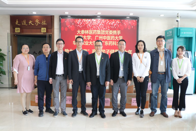 为响应广东省“留粤”过年号召,2021年2月7日,大参林医药集团党委副书记谭锡盟和人力资源中心总监陈智慧代表公司和党委,向暨南大学、广州中医药大学、广东药科大学、华南农业大学“留粤”过年的学子送去了16万个医用口罩。